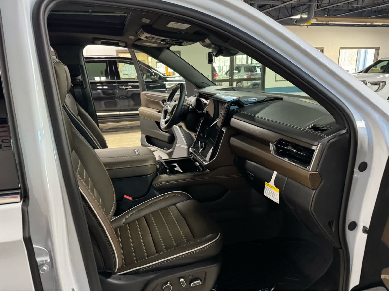 Leather Seats, Third Row Seat, Sunroof, Panoramic Roof, Quad Bucket Seats. GMC Denali Ultimate with Glacier White Tricoat exterior and Woodland Mahogany interior features a 8 Cylinder Engine with 420 HP at 5600 RPM*.