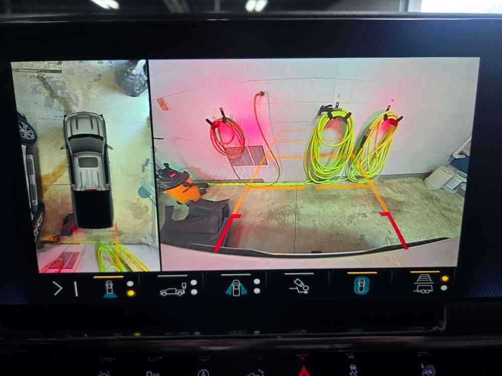 - Allows driver to see inside the cargo bed on the infotainment display to help with 5th wheel or gooseneck hitching and to check cargo
